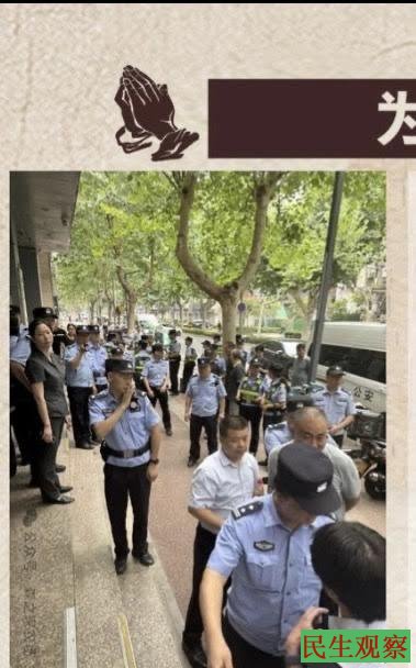 【民生观察2025年7月12日消息】近日,西安丰盛教会廉长年牧师、廉旭亮牧师、付娟传道三人,被控涉嫌诈骗罪一案,在西安灞桥区法院开庭审理。当日法院违法解除辩护人,不让律师进入。法院门口大量不明身份人员推搡律师,不让拍摄,甚至欲抢律师手机。律师报警,警察来后不核实不明人员身份,反要带走报警人。不明身份人员还当着警察的面大声呵斥报警人老实点,并继续上前推搡,警察不对其进行调查。