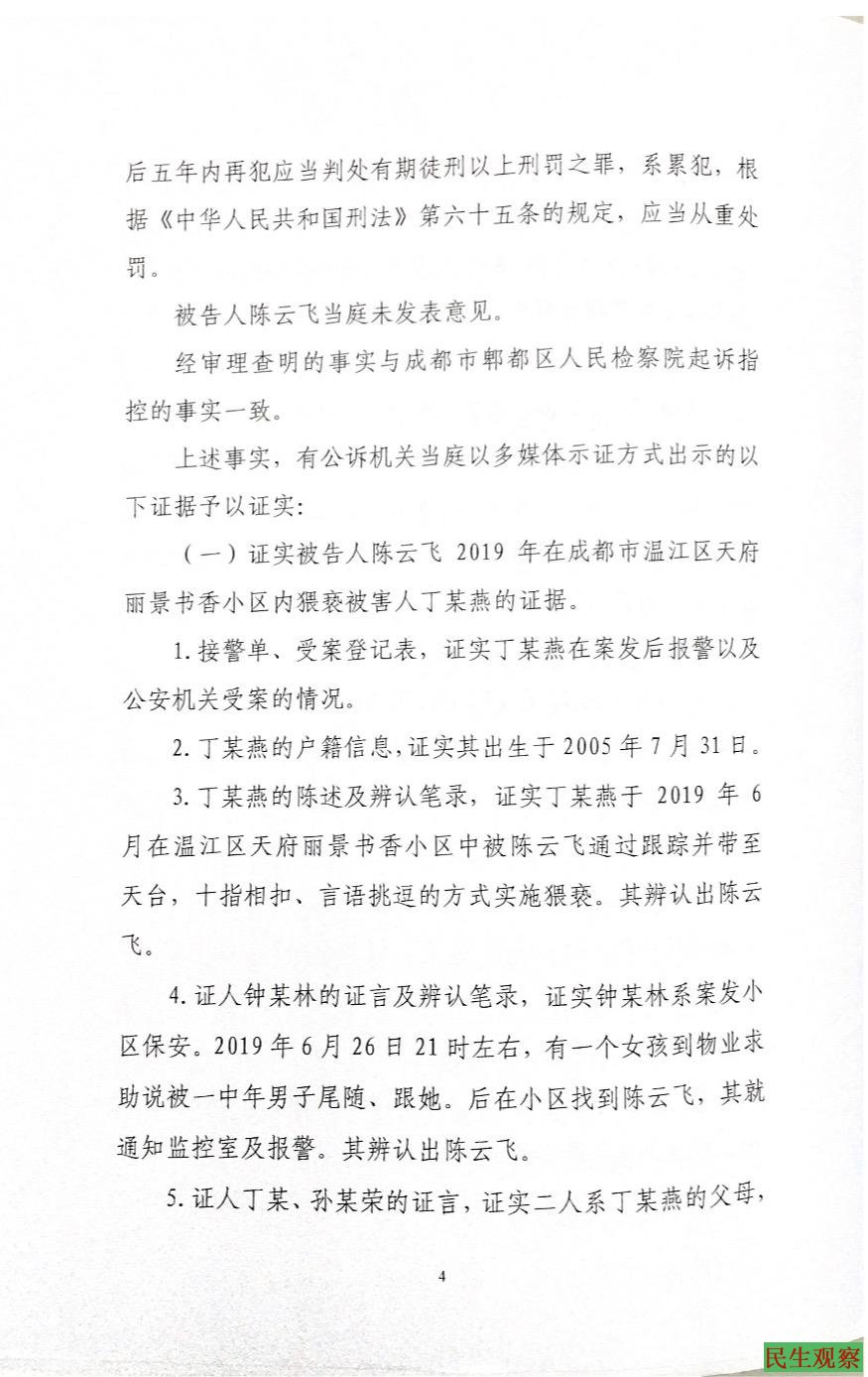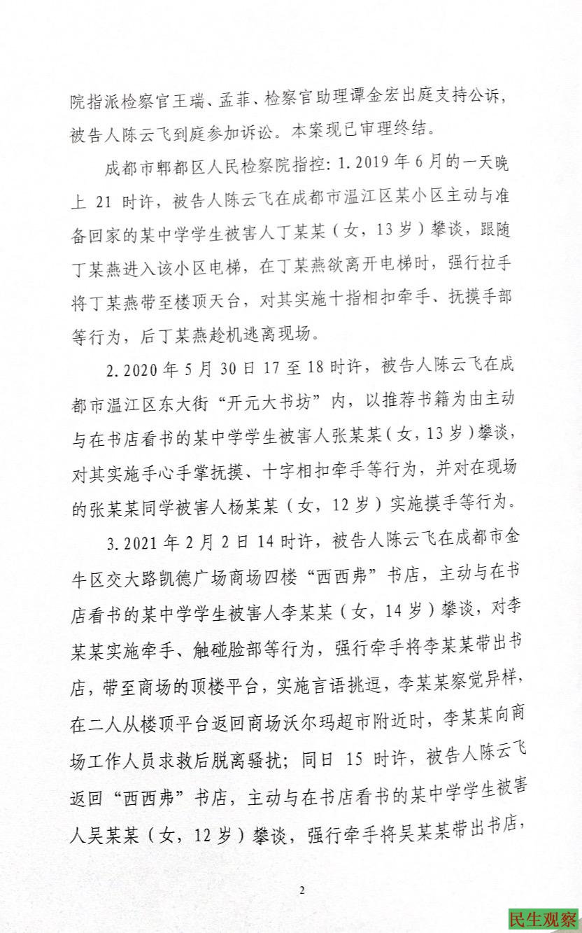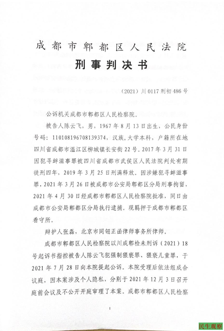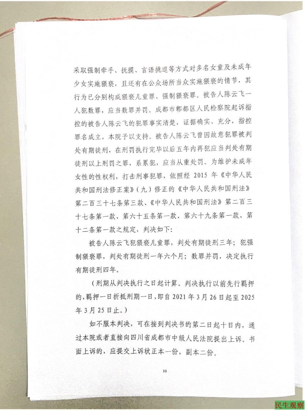 2021年3月25日,其在陪母亲在成都市犀浦镇散步时突遭数名员警抓捕,其租赁房屋被查抄,其母被强行送回以前居住地;同年4月23日,被成都市陴都区警方以涉嫌“寻衅滋事罪”刑拘;同年4月30日,被陴都区警方以同罪名转正式逮捕;2021年12月3日,被四川省成都市郫都区法院以“强制猥亵罪”(判1年6个月)、“猥亵儿童罪”(判3年),数罪并罚,决定执行有期徒刑4年,刑期至2025年3月25日。