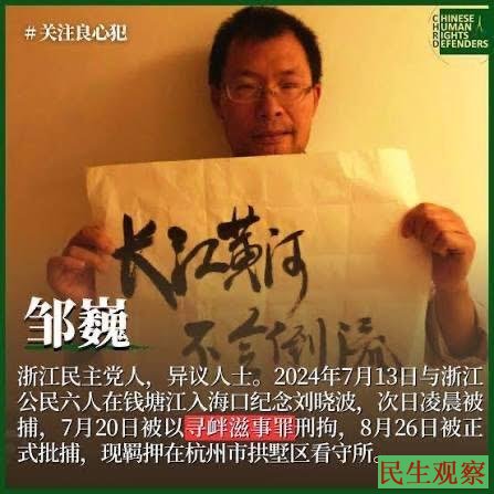 2024年7月13日,因悼念刘晓波,昝爱宗和邹巍等人被抓捕。