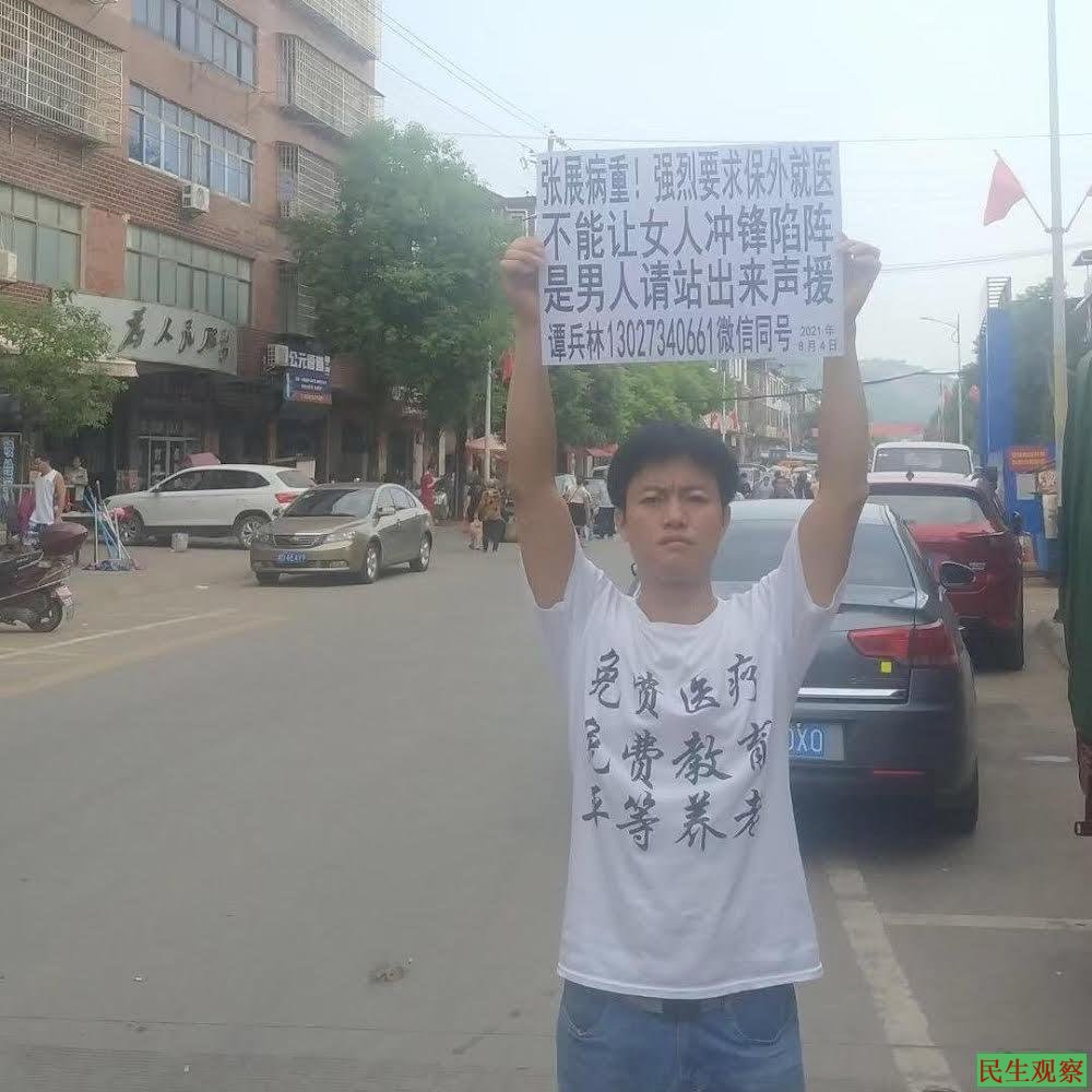 2022年6月29日,谭兵林因父母被强行接种新冠疫苗,到村委会进行举牌抗议,立遭衡阳市祁东县警方抓捕,随后失联;同天其家被查抄,其个人手机和笔记本电脑等被一并抄走;