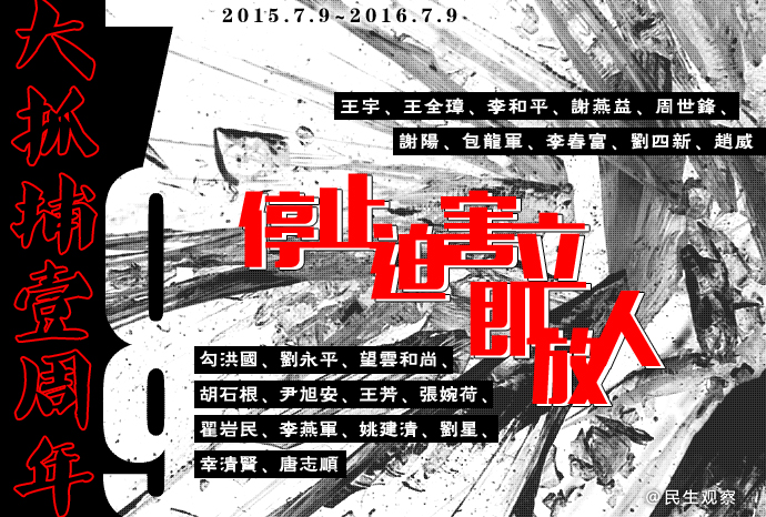 709大抓捕一周年 民生观察呼吁停止迫害立即放人