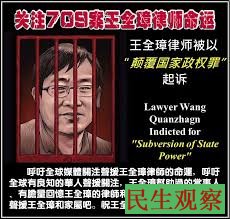 24.王全璋,山东省日照市五莲县人,著名人权律师,目前在开津市第一看守所。自成为执业律师以来,因以维护言论自由和健全中国法治为要求,积极维护弱势群体利益,遂代理过多起敏感案件。2015年8月5日,因“709大抓捕”事件而被北京警方以“寻衅滋事”、“煽动颠覆国家政权”两罪被指定监视居住;2016年1月8日,被以涉嫌“颠覆国家政权罪”正式逮捕。在其被强迫失踪后的两年半多时间内,其律师会面权及家属知情权、探视权等均遭剥夺。