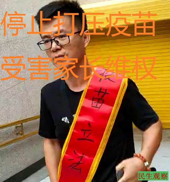 据本网报道,中国一批被伪劣疫苗接种受害的儿童的家长,日前因到北京身披“疫苗立法,妥善处理”条幅而向中共当局提出维权诉求,结果遭到北京警方带走,并随后被转交给各地警方强制带回,进而在全国展开一系列针对疫苗受害家长维权的打压:一些家长在被带回关押几天后获得释放,但河南董俊华、刘胜利被刑事拘留;多名家长被行政拘留;上海疫苗受害者谭华从9月2日失踪,至今没有任何消息;有疫苗受害家长因带孩子到北京看病而遭到驱赶,等等。民生观察对中共当局针对疫苗受害者家长维权而采取肆意违法侵权打压的行径,表示强烈抗议和严正谴责!