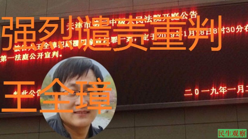 本网获悉,1月28日上午,天津二中院以“颠覆国家政权罪”判处人权律师王全璋有期徒刑4年6个月,剥夺政治权利5年。王全璋律师秉持良心,依据法律,为弱势群体申讨权利,替蒙冤民众呐喊奔走,为推进中国法治建设与人权改善而不辞辛劳、不畏艰险,结果招致中共当局抓捕镇压,在严重超期羁押3年多后,于2018年12月26日开庭,到一个月后重判。民生观察对中共当局枉顾法律,无视事实,践踏人权,枉法判决王全璋重刑表示强烈抗议与严正谴责!