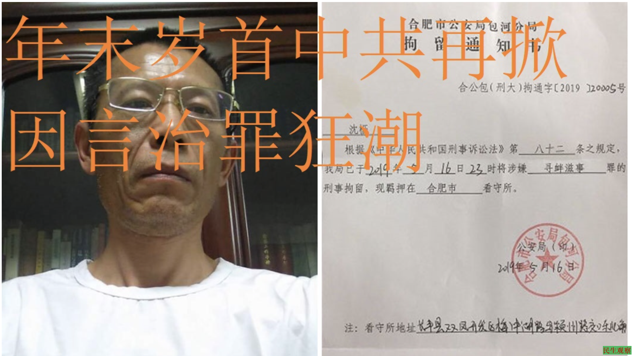 沈良庆先生,系安徽前检察官,曾积极参与八九爱国民主运动,六四屠杀后仍坚持推进中国民主法治,后被劳教及判刑,出狱后致力中国人权改善工作,调查研究撰写揭露中共纪委双规违法侵权专著——《“双规”问题民间调研报告》,并持续就中国大陆一些公权违法侵权事件发声,因此经常遭当地警方传唤、软禁、拘押,2019年5月因于八九民主运动30周年前夕,接受日本媒体采访,谈论六四镇压,谴责中共当局,而于当年5月15日晚被合肥当局抓捕,5月16日被以涉嫌“寻衅滋事罪”刑事拘留;期间,经合肥包河区检察院两次退回侦查机关补充侦查,侦察机关又重新报送审查起诉,迄今其已被超期羁押历时将近1年零8个月,现被关押在合肥市看守所。定于元月13日开庭审理。