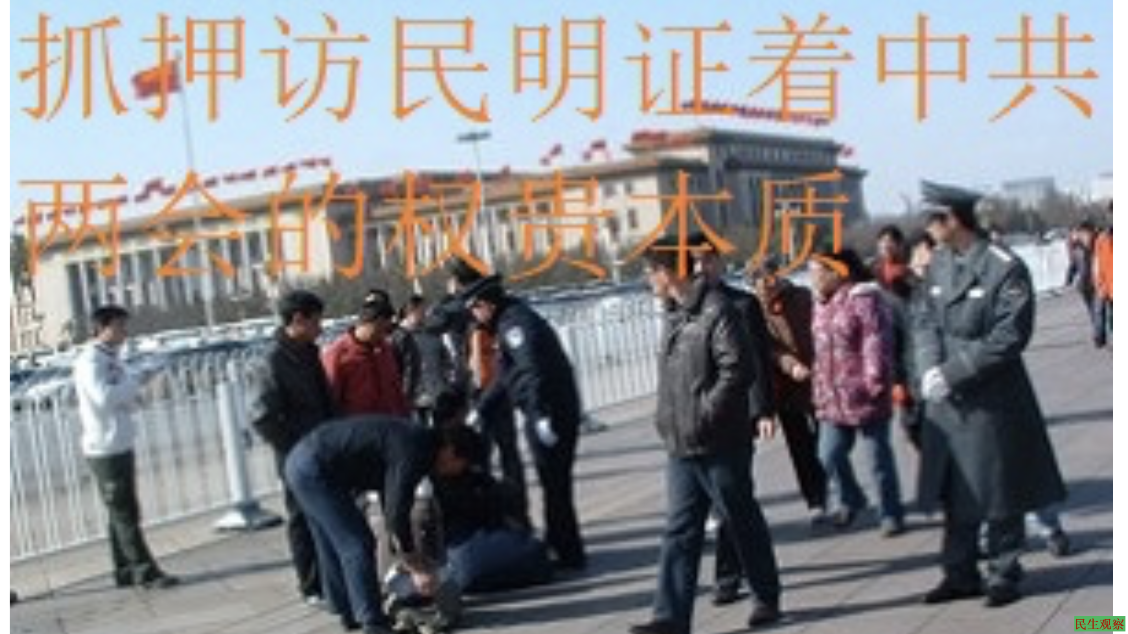 中共当局一直标榜立党为公执政为民,设立所谓代表民意的人民代表大会与协商时政的政治协商会议,每年一次轰轰烈烈地召开,向世界宣示着自己多么重视民生、民意,以掩饰自己执政合法性的缺失。而各级权力部门为了确保两会表演不受干扰,长期来疯狂镇压民众,使两会成为中国民众尤其是上访维权民众的劫难。中共这种惧怕民意,禁绝民声,肆意抓押维权民众的行径,赤裸裸地暴露出中共两会与民为敌,践踏人权,无视法制的违法侵权本性。