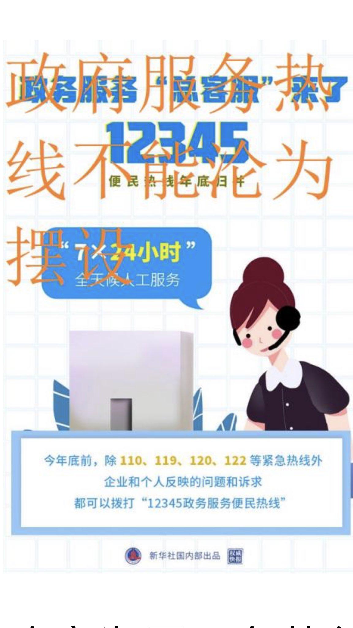 2021年1月6日,《国务院办公厅关于进一步优化地方政务服务便民热线的指导意见》印发。《意见》要求,加快推进除110、119、120、122等紧急热线外的政务服务便民热线归并,2021年年底前,各地区设立的以及国务院有关部门设立并在地方接听的政务服务便民热线实现一个号码服务,各地区归并后的热线统一为“12345政务服务便民热线”,提供“7×24小时”全天候人工服务。同时,优化流程和资源配置,实现热线受理与后台办理服务紧密衔接,确保企业和群众反映的问题和合理诉求及时得到处置和办理,使政务服务便民热线接得更快、分得更准、办得更实,打造政务服务“总客服”。
