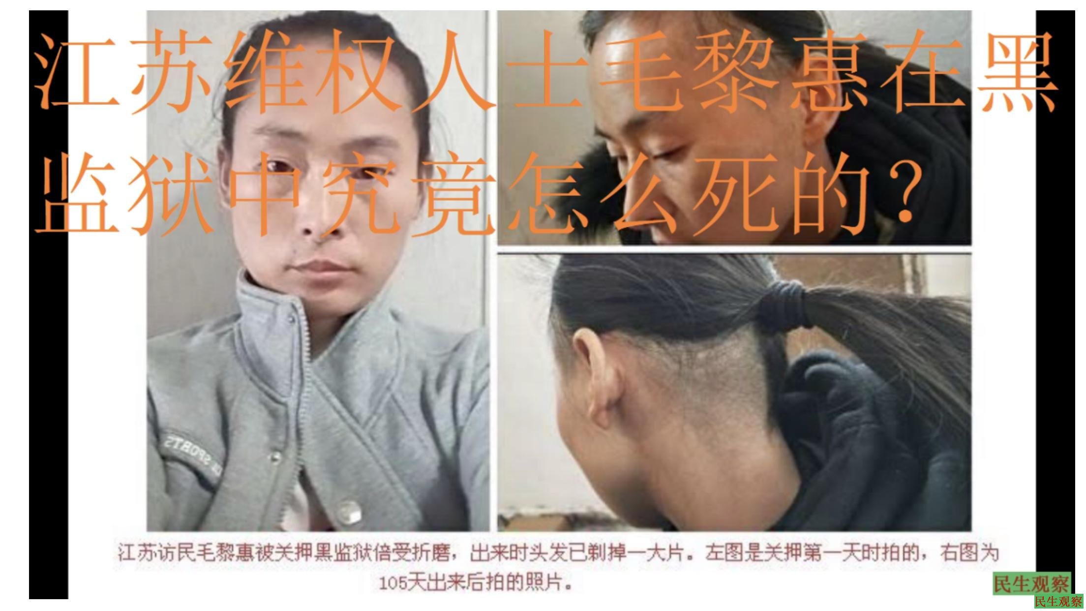 追问江苏维权人士毛黎惠在黑监狱的死因 |