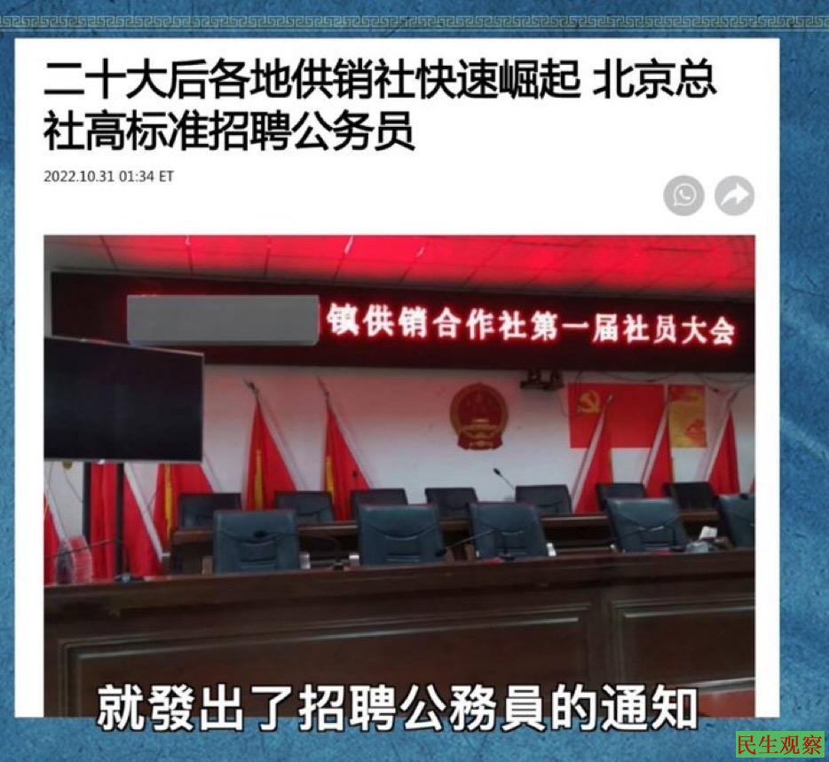 《湖北日报》的报道和两部的联合《通知》都已是半月、一月前的旧闻,被网络有心人一点火,竟顿时在民间尤其是网络世界沸腾,不少民间人士怀疑大规模复活供销社表明中共意图收紧对粮食等农产品的垄断,更是为进犯台湾提供又一条战时后勤保障机制。民间的这种恶猜式反应无疑与供销社和食堂留给底层大众的恶劣历史记忆以及中共丧尽民心、信誉崩盘、善使阴阳两手有极大关系。