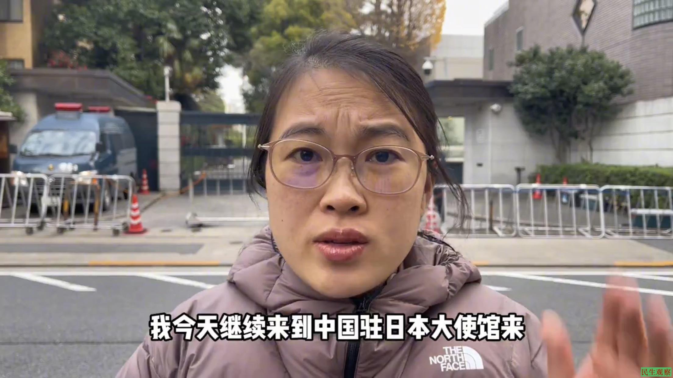 在日本留学的山东龙口市民李宁坚持每天到中共驻日本使馆控诉杀害她母亲李淑莲的中共山东龙口匪官和维稳匪徒。