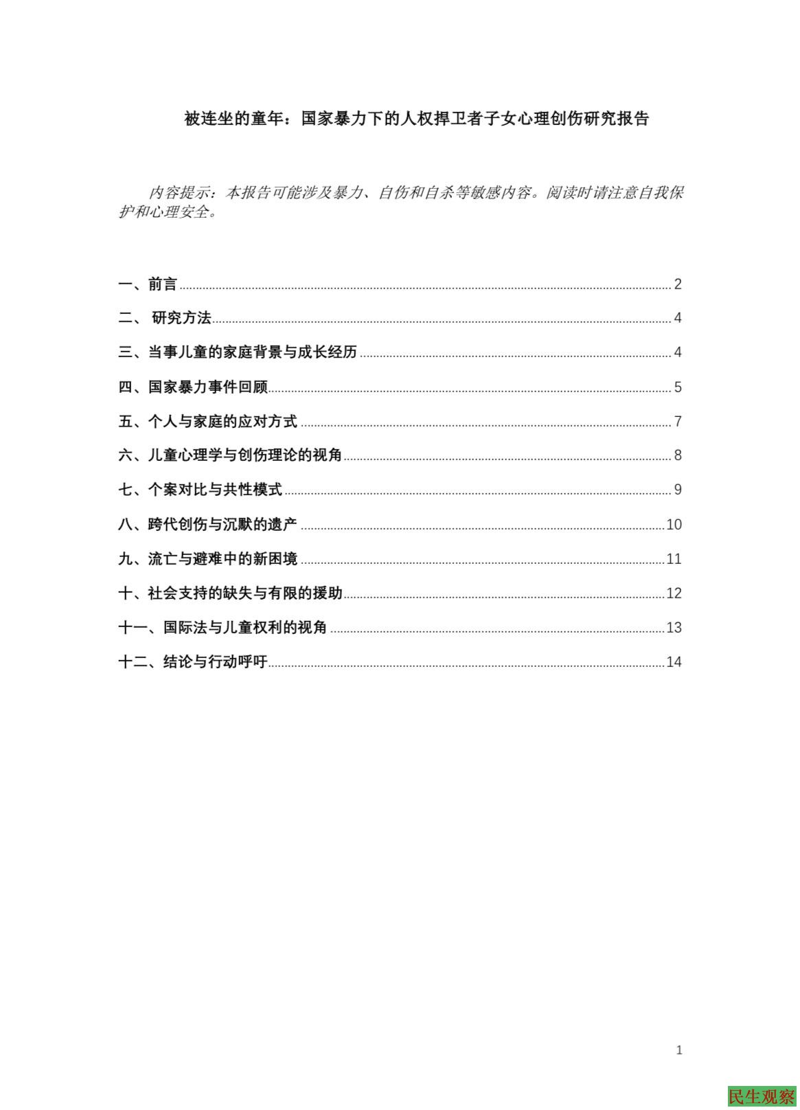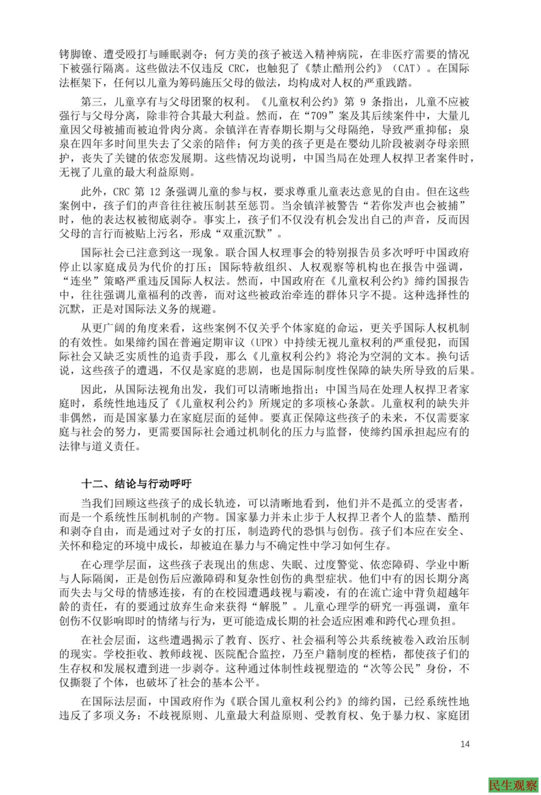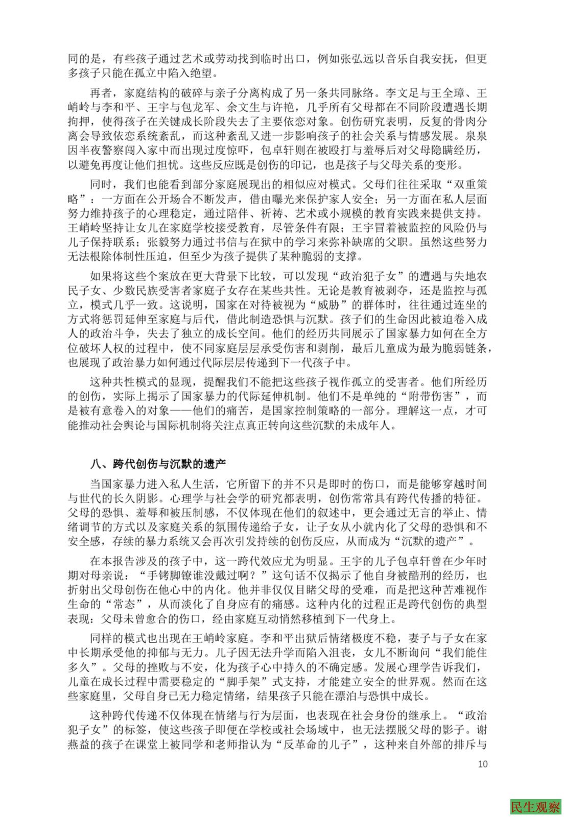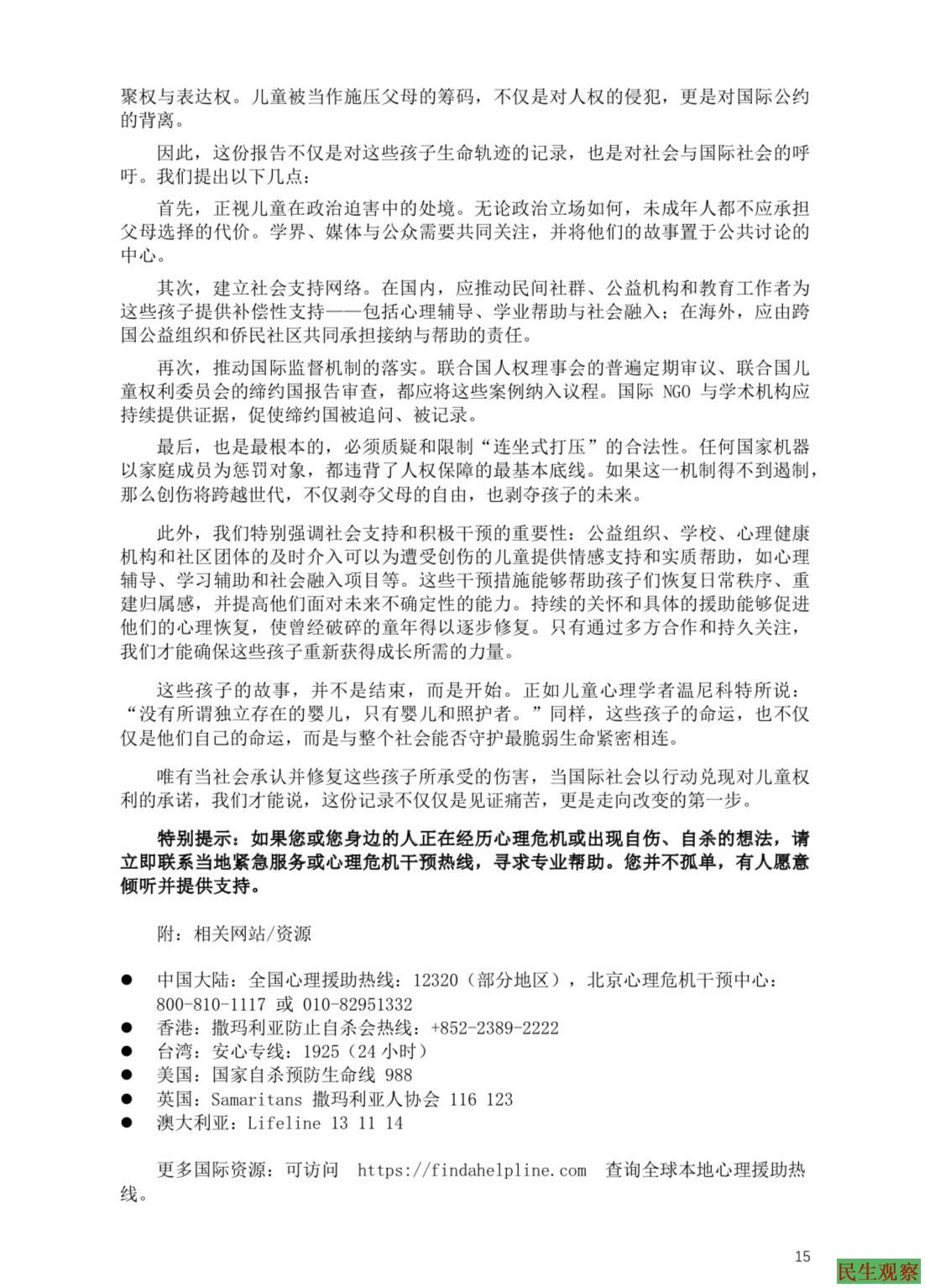 报告最后强调:如果社会和国际社会继续忽视这些孩子,他们所背负的创伤与沉默将一代代延续,成为长期的伤痛。唯有正视、支持和行动,才能为他们打破“被连坐的童年”。