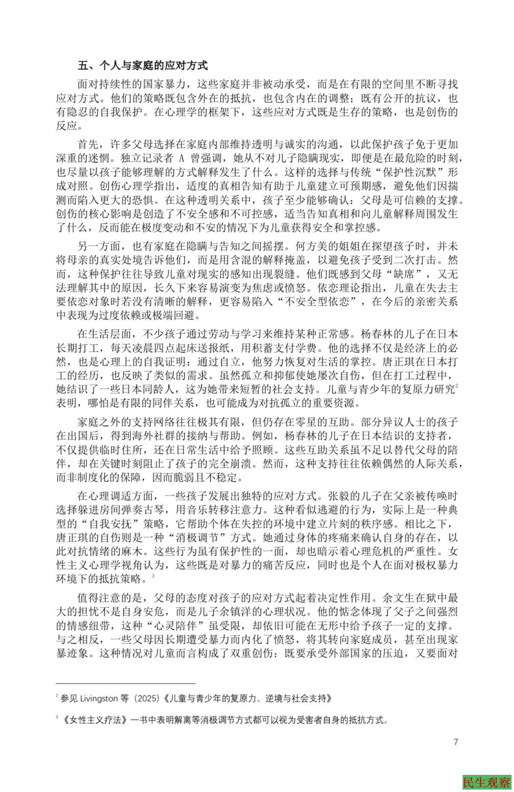 被连坐的童年:国家暴力下的人权捍卫者子女心理创伤