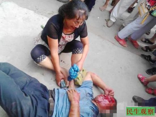 民生观察工作室2013-7-19消息:据一位网友爆料,前天上午9时许,湖北省枣阳市吴店镇城建办3名城管队员来到该镇十字街巡查,在向一对卖香瓜的夫妻收取占道费时,发生肢体冲突,卖瓜小贩夫妇被3名协管员打得满脸是血,其中男性瓜贩被打的昏倒在地。