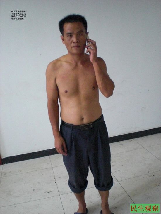 同时,今天在保护河北访民车翠玲和四川访民时,江西访民黄荣华被打伤,以下是现场图片: