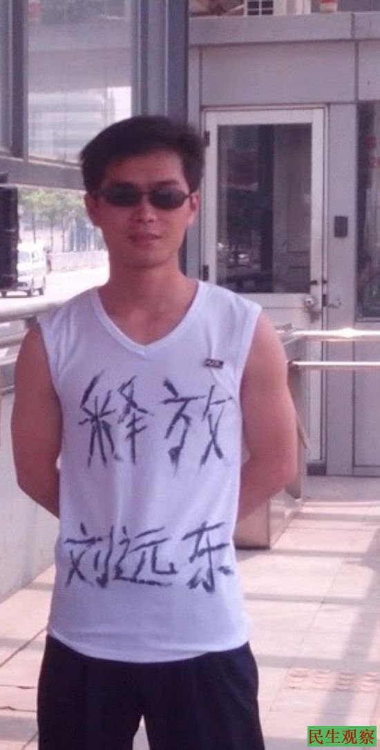 照片拍摄于今年4月份,杨霆剑在天河公园呼吁释放刘运东。