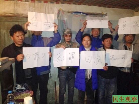 昨晚,有到达新余的部分维权人士在一起举牌合影,呼吁新余当局还刘萍、魏忠平、李思华等人的自由。另据,抵达新余的维权人张皖荷来电称,她们二人昨夜乘火车今晨刚到新余不久,就被七八个便衣和警装人员拦截控制。