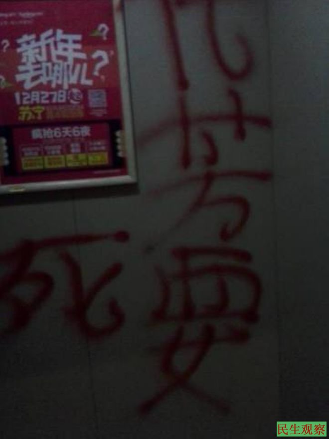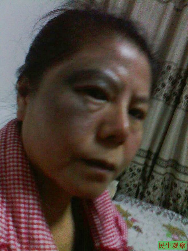 民生观察工作室2014-1-4消息:今天晚上,武汉市硚口区居民代芳致电本工作室说,今天傍晚六点半左右吃晚饭时间,二名年青男子突然冲进她家中,挥拳就将她打倒在地。边打还边说“老子在这里等你半天了”“这段时间你给老子过点细”“你得罪了不该得罪的人”“这个星期你不得外出,否则老子找你儿子”。行凶完毕后二名黑社会人员扬长而去,随后代芳发现她家楼梯间、墙上都喷了“代芳想死”“代芳要死”的字。