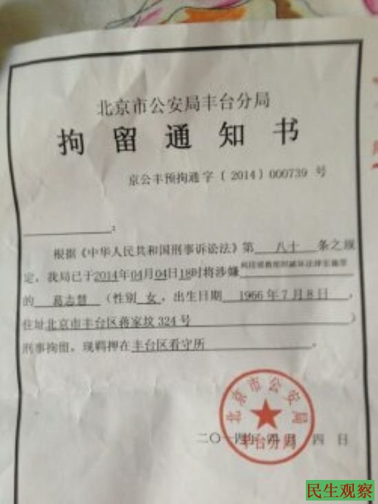 据葛智慧的亲属说,他们4月4日接到丰台区看守所电话,让去拿家属通知书,没想到是以这个理由拘留。