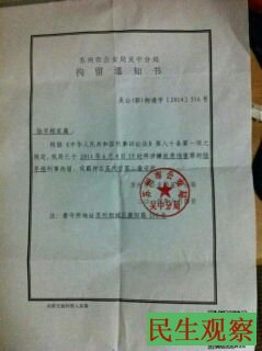 苏州陆早根六•四日刺伤跟踪人员被刑事拘留