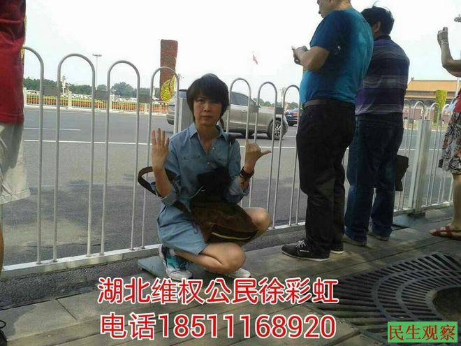 民生观察工作室2014-6-5消息:昨天六·四二十五周年纪念日,来自湖北襄阳的访民夫妇徐彩虹何斌与朋友一同前往北京天安门广场,过安检时被天安门警察扣留了。随后,徐彩虹夫妇被抓到北京前门公安分局派出所。