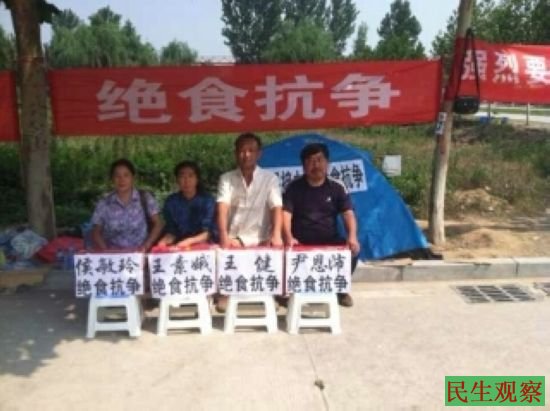今天参加绝食的声援团成员侯敏玲、王素娥、王健、尹恩沛看着这场景,毫无动摇,一直坚守在岗位上,任凭警方在眼前晃来晃去。