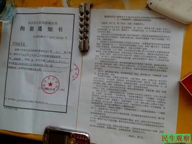 民生观察工作室2014-8-20消息:黑龙江访民郝淑娥与北京的上访户,75岁的老干部张荫乾7月22日,一起到北京市西城区法院,要求法院对不服《行政复议》的案件立案。此举激怒了法官,西城法院与北京市白纸坊派出所构陷罪名,强行绑架、抓捕了郝淑娥和张荫乾。7月24日他二人被北京市公安局西城分局以“寻畔滋事罪”刑拘,关押在西城区看守所。