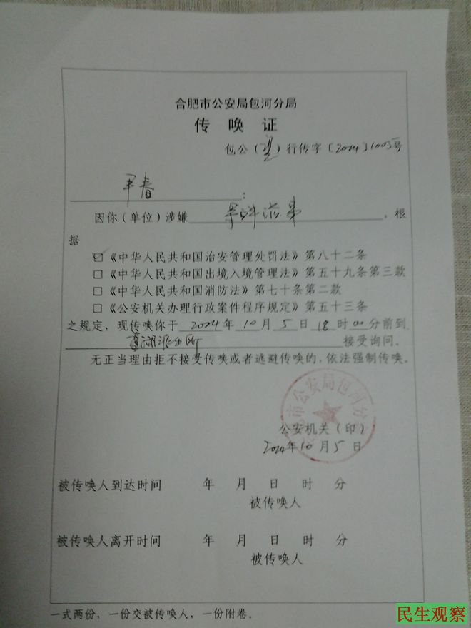 民生观察工作室2014-10-6消息:昨天晚上,安徽合肥异议人士沈良庆、尹春先后被传唤抄家,并扣押家中电脑等物品。