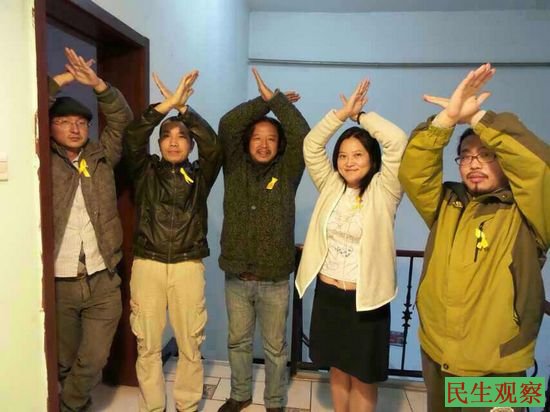 上图:右一为王藏与友人声援香港占中