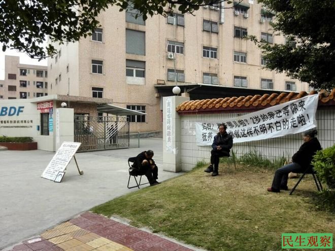 刘宇父母都是六十多岁,还留下一个2岁多的儿子。厂方推辞说是自杀,愿意以补偿的方式拿出7万元钱,家属难以接受,在厂方门口挂横幅,寻求线索,但是厂里的工人迫于压力不敢跟他们接触。