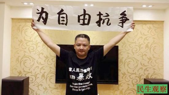 近期,“湖面一舟”的太太发消息称:我的丈夫湖面一舟(叶晓峥),因2014年10月,在家穿了印有“当人民恐惧政府即为暴政“的T恤声援香港人争取真普选,于12月12日被七个国保抄家并抓捕,罪名:“寻衅滋事罪”。我的丈夫为人正直,心地善良,友好待人,乐施好善,好打抱不平,有一颗正义之心!经常帮助被官欺压的弱势群体,因此得罪了不少政府高官权贵,国保队长陈队长曾威胁他,扬言以后要找理由抓捕他,让他跟网民“数码哥”一样坐牢,还锁了他的港澳通行证,理由是:危害国家安全。但是,我的丈夫只是凭良心做事,帮弱势群体维权、鸣冤,怎么就危害国家安全了?我国宪法规定:中华人民共和国公民享有言论,出版,集会,游行,示威的自由,因为这些都是对国家机关和国家工作人员起到了监督作用。他希望我们的国家民族团结,人人都可以安居乐业,希望自己的后代生活在享有真正民主,富强的国家,在碧水蓝天下自由呼吸空气。引用一句诗:“君见一叶舟,出没风波里“愿你早日归来,孩子想你了!”