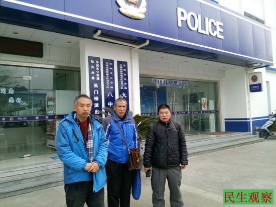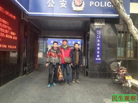 上图为:王健(中)、胡海波(左)、尹旭安(右)三人到沧浪派出所声援