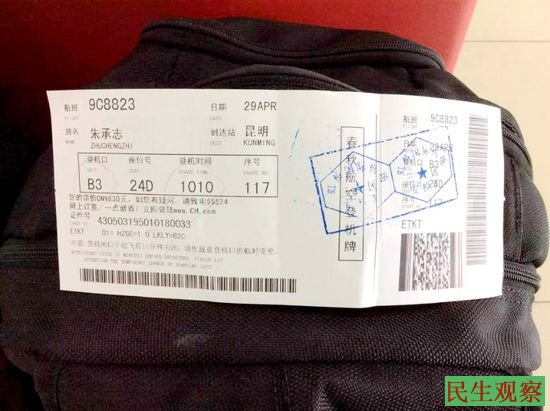 10:30分许,朱承志消息称,自己被非法遣返,目前已被警察送到上海机场,准备搭乘10:40分上海飞往家乡昆明的班机,预计将在15:30抵达昆明。