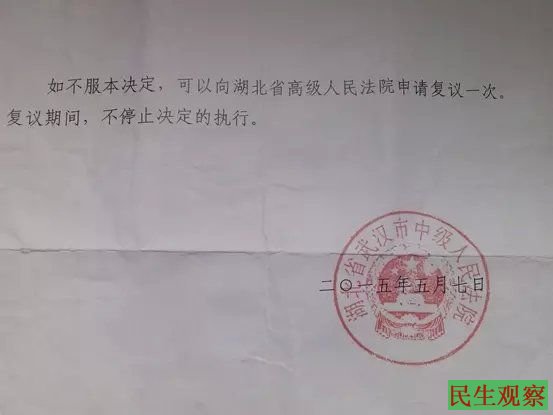 武汉市法院对童斌造成了伤害,现在他要求家人为他申请复议,进行申诉!