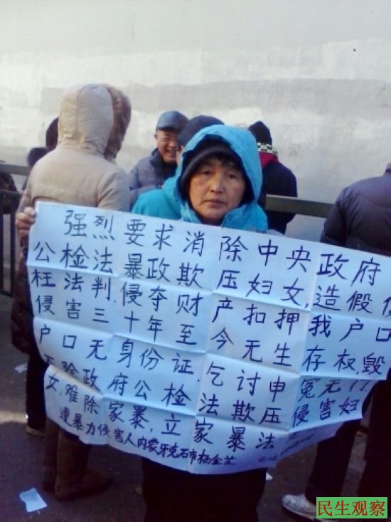 内蒙牙克石访民杨金芝失联 疑因拉横幅被抓