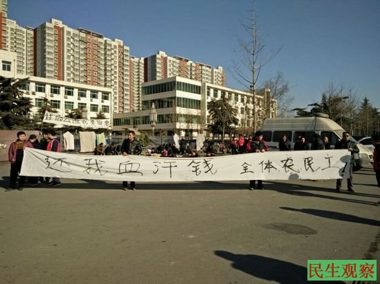 河北定州市政府200民工拉还我血汗钱横幅讨薪