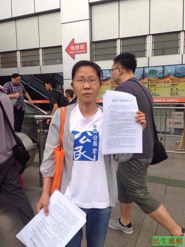 图为张婉荷在广州街头散发传单