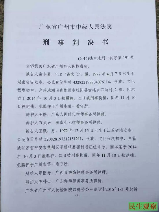 謝文飛被判刑4年半,剥夺政治权利3年;