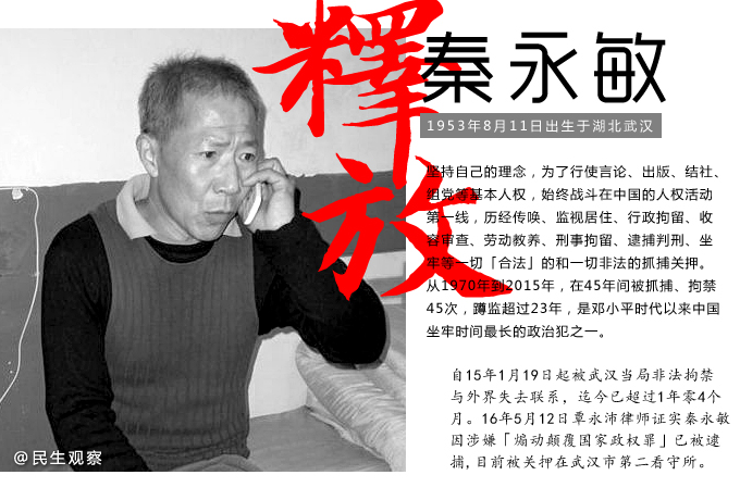 秦永敏被以煽颠罪羁押待审 民生观察呼吁无条件释放 |