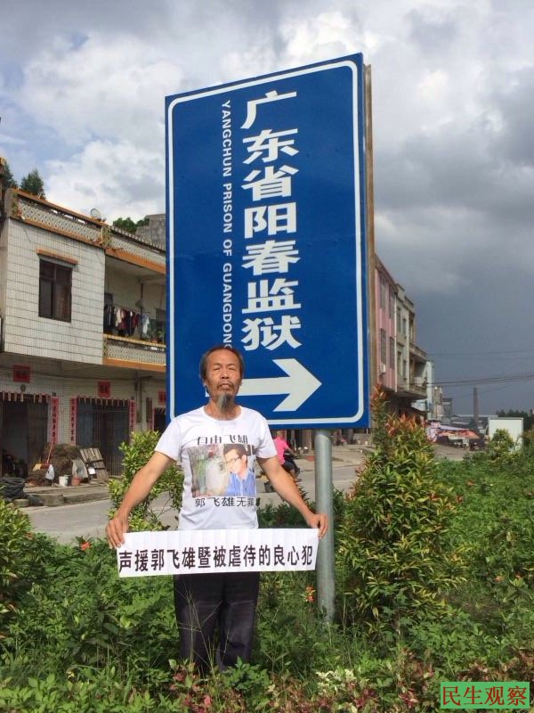 对此朱承志认为阳春监狱的这种做法明显侵犯公民权利。随后朱承志又在监狱外拉条幅声援郭飞雄。