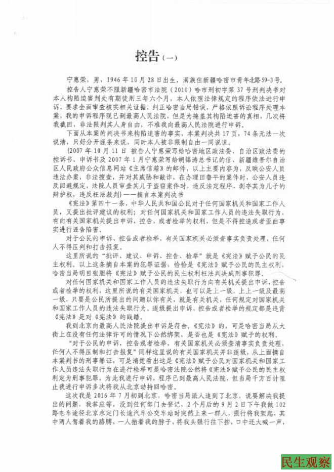 新疆70岁访民宁惠荣讲述中秋国庆期间被关押