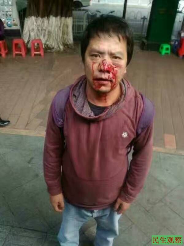 南街抗争者陕西籍公民刘辉在广州被人殴打致满脸流血