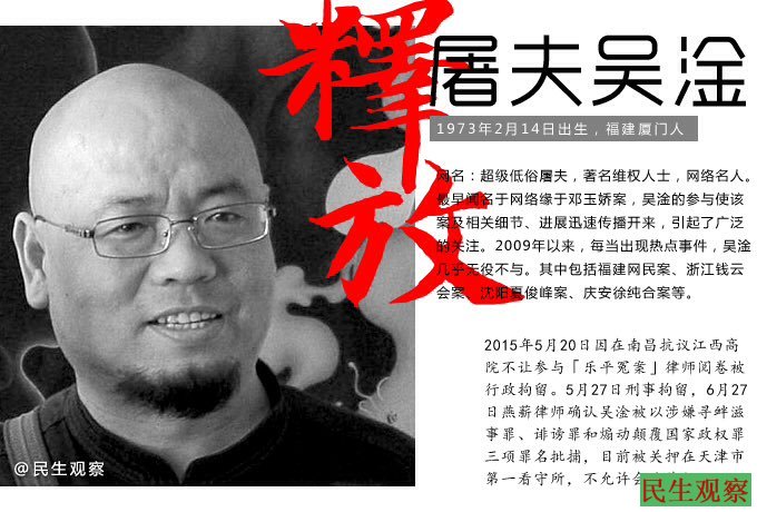 [民生观察工作室2017/01/03消息]著名维权人士吴淦(屠夫)涉“寻衅滋事罪”和“颠覆国家政权罪”,已经被起诉至天津市第二中级法院。