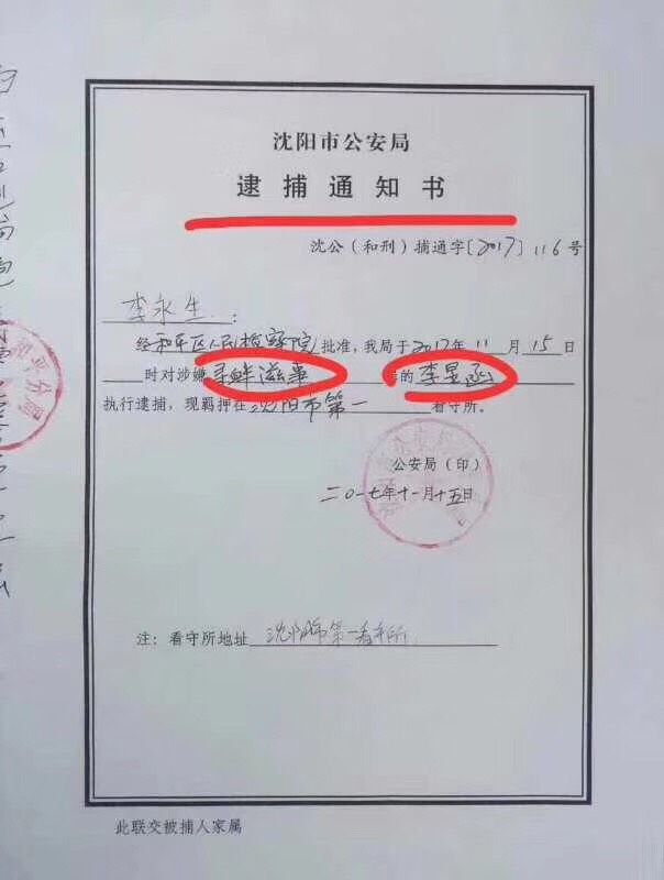 【民生观察2017年11月16日消息】本网获悉,早前被拘的李昱函律师的家属于日前刚刚收到沈阳当局发出的《逮捕通知书》,家属担心其健康问题;赤壁陈剑雄(陈进新)的姐姐亦于日前收到弟弟的《逮捕通知书》,家人及女友担忧陈剑雄旧患加重影响健康。