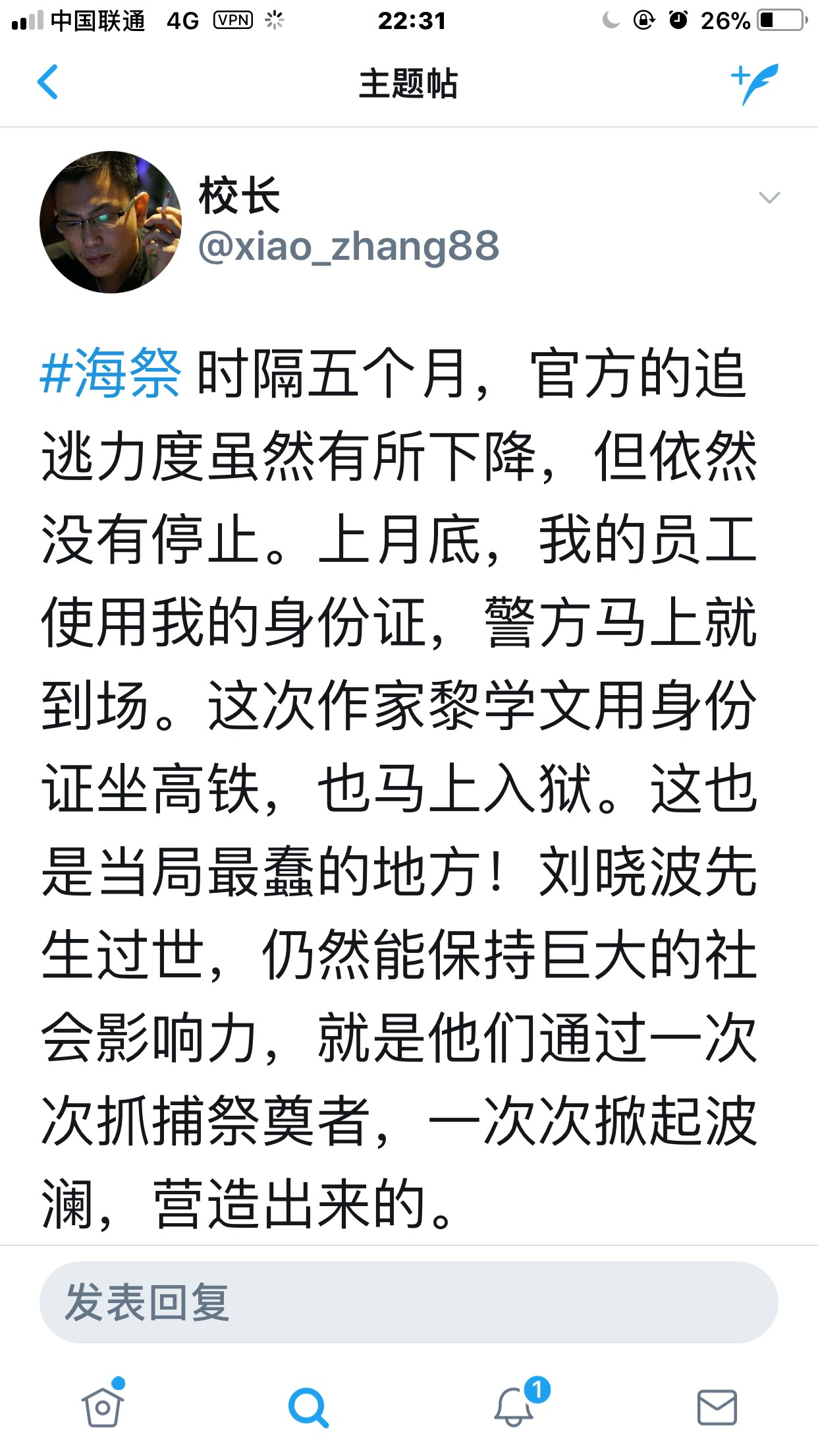 相关报道:因参与“海祭刘晓波” 今天下午黎学文被捕