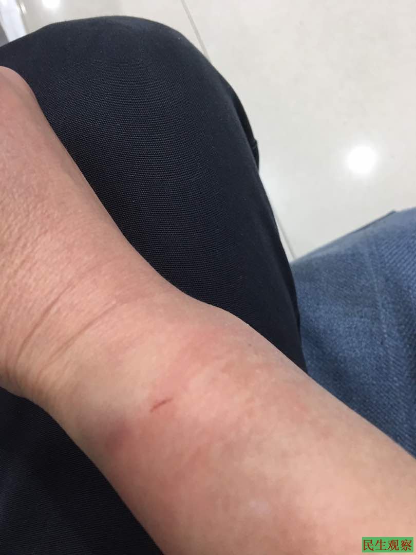 然而,一个小时过去后,李蔚再次发出消息说:“后脑还有包”,并配有自己被打伤的照片发到网上。李蔚说:“我没有任何违法。他们只是说要核查,没有手续要带我去派出所。我拒绝。前面敲门,查身份证,我立即配合了。随后他们破门而入,按倒,拿胶木棒打,脚踢,我把打伤,背铐带到派出所。”