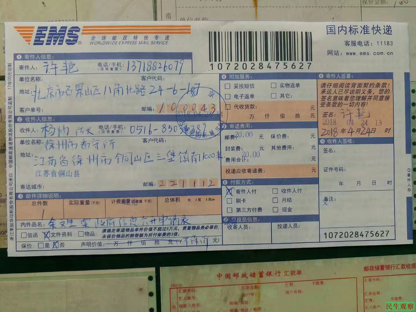 【民生观察2018年4月24日消息】最近江苏徐州警方以持有的一份声称来自余文生本人亲笔签署的声明为由,拒绝余案辩护人常伯阳律师及谢阳律师的会见申请。今日,两位律师联合发布声明,就警方所称的由余文生亲笔签署的所谓解聘书提出质疑。同时,余文生妻子许艳女士向徐州当局邮寄多份信息公开申请,以尽可能了解已被羁押三个月且尚未有律师会见的丈夫余文生的具体情况。