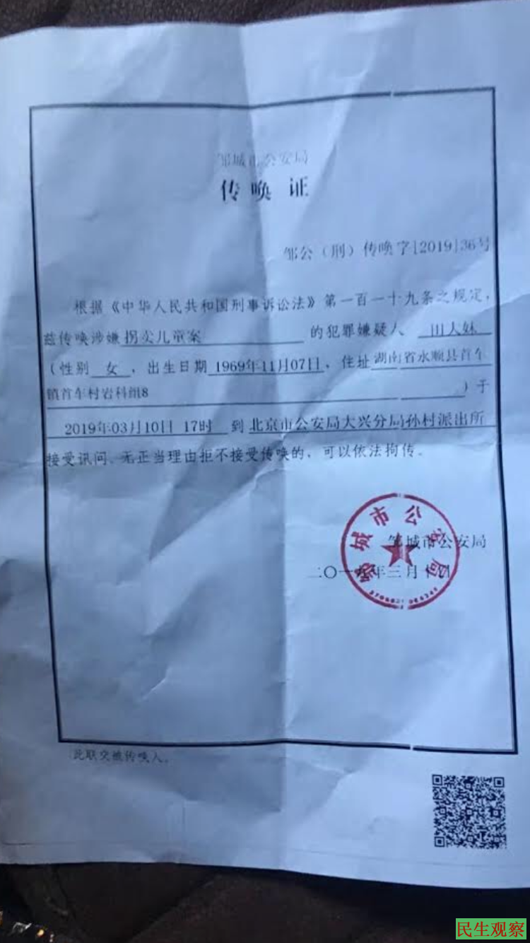 二、3月7日山东访民刘佳鑫被截访人员从北京暴力抓走,刘佳鑫7岁的儿子刘小辉被一人独自留在北京大兴。3月10日湖南爱心女士田大妹从网上看到去寻找到被遗弃的孩子,被山东警察围困在租住屋内,后被北京市公安局大兴分局孙村派出所以涉嫌拐卖儿童罪传唤至该派出所长达19个小时,期间被坐老虎凳、戴脚铐手铐不给饭吃,不让睡觉,田大妹被折磨得死去活来,在派出所被逼自杀,被警察拦住。3月11日,爱心人士唐新波也因救助刘小辉被强行带到长阳派出所传唤两三个小时,释放后被警方驱逐,不准其在北京租住的房屋内居住,唐新波现有家不能回被迫在外流浪。