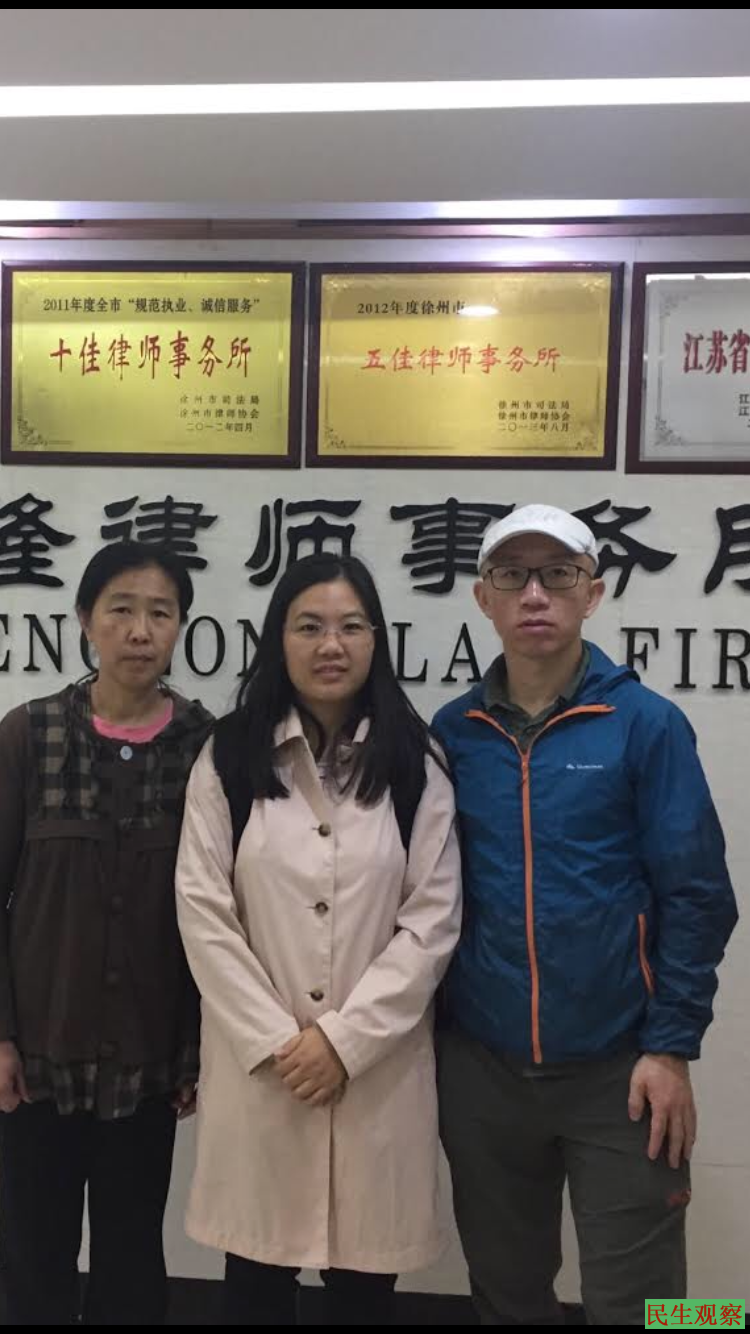 3月26日,许艳女士在胡佳、吕动力、王素娥等好友的陪同下去到徐州,分别去到两位官派律师赵强以及岳松的办公地点,不过两处律所均不见上述律师,均以办案未回为由推却查问。