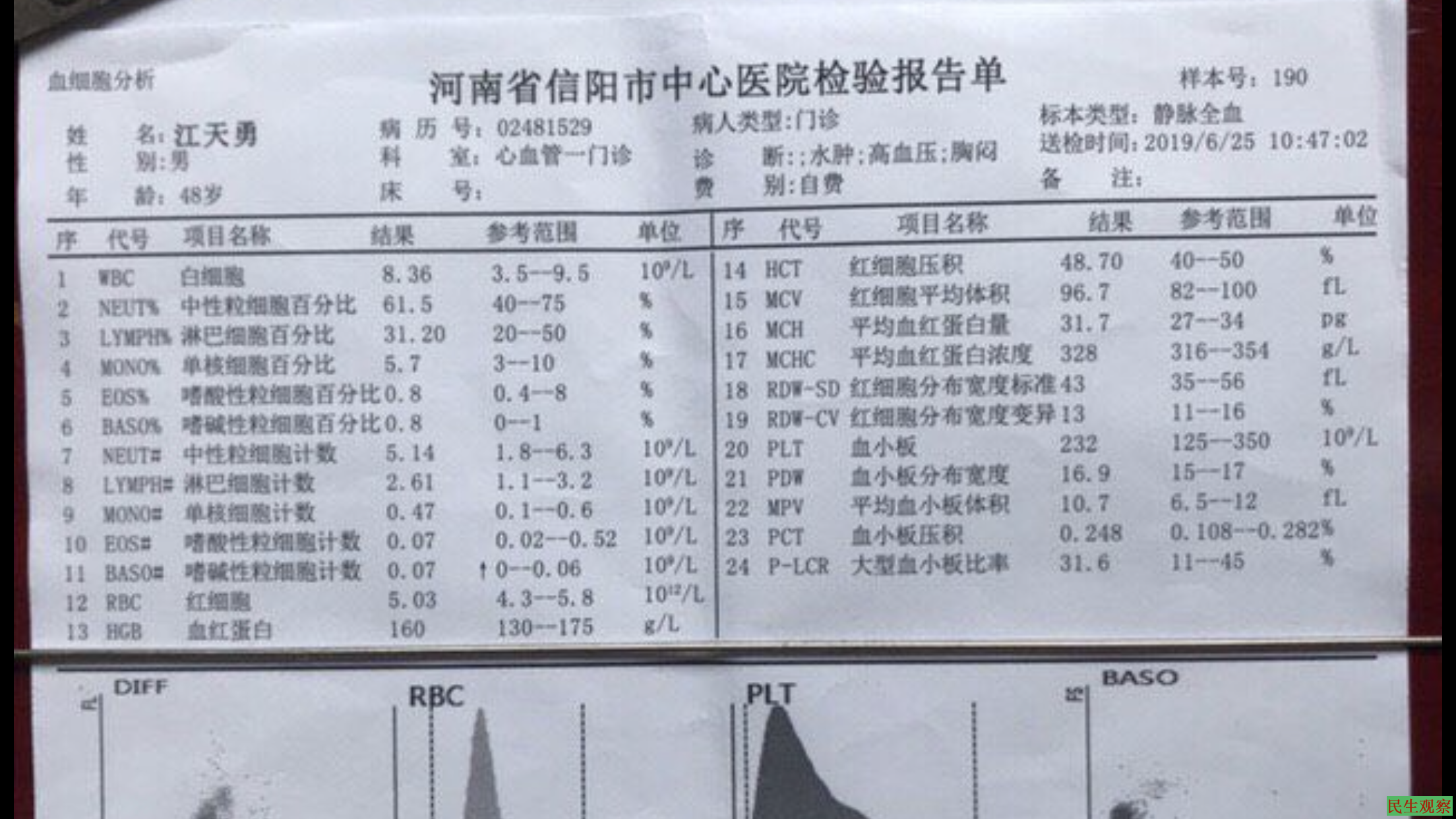按照26日拿到的检查结果显示,25日上午十点多的抽血检查项目,在一个小时左右后已经有了检查报告,但江天勇本人却在翌日才拿到检验报告,细节耐人寻味。