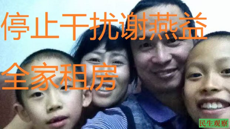 因此,民生观察强烈要求中共当局:立刻停止对谢燕益律师全家租房的干扰与打压;立刻在全国停止一切侵害公民居住权、迁徙权、生存权等等基本人权的行径;立刻启动旨在保障人权的政治体制改革,切实兑现对公民宪法权利保护的承诺。